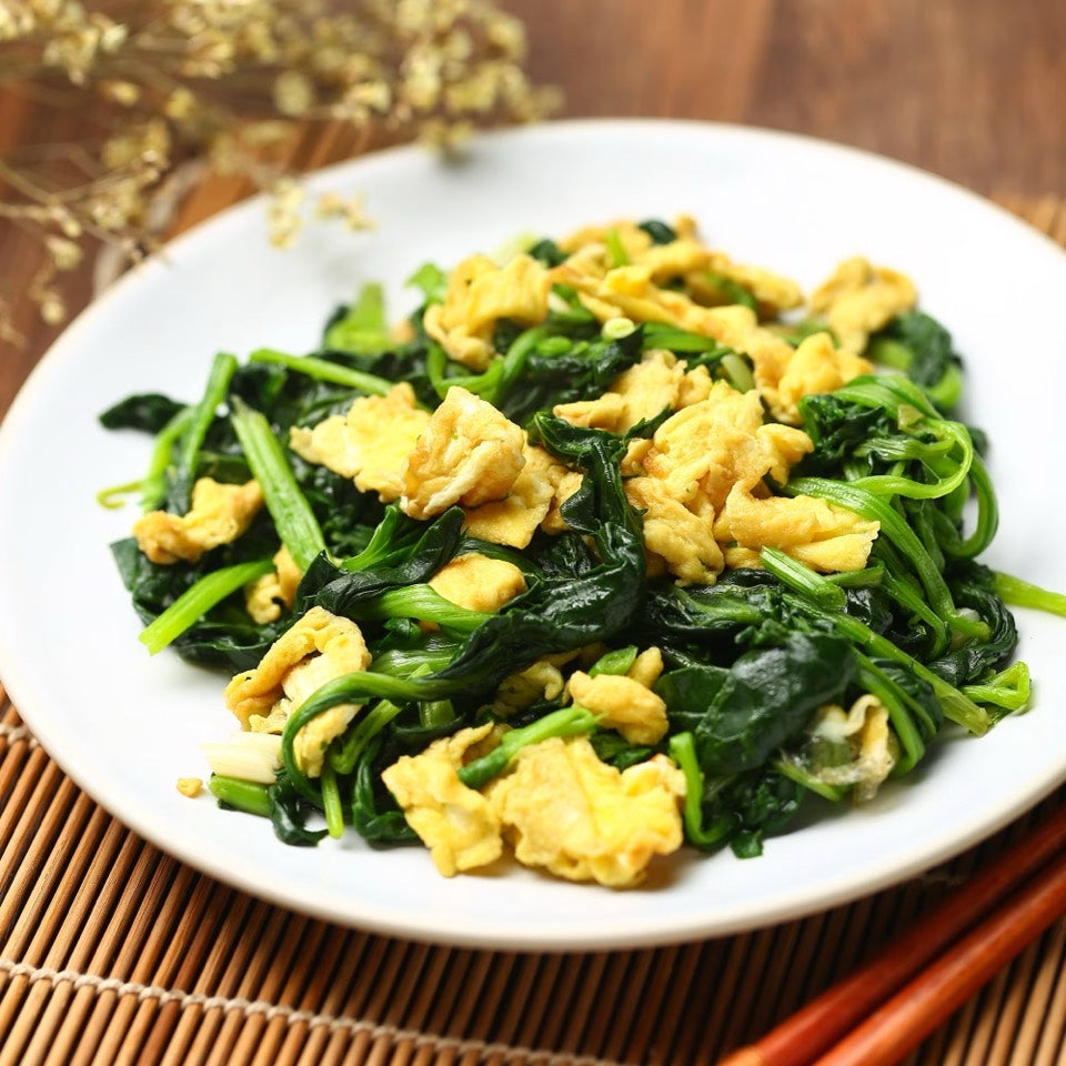 Espinacas, huevo, ajo, pimienta, nuez moscada, sal, aceite de oliva virgen extra